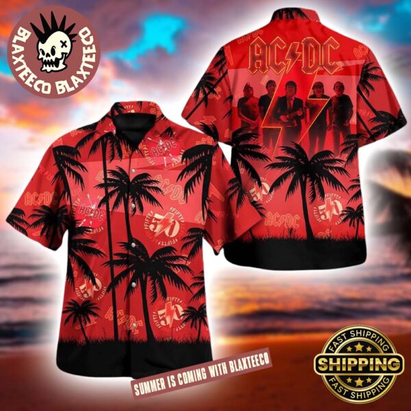 Blaxteeco: ACDC 50th Anniversary Palm Tree And Logo Pattern Red 2025 Hawaiian Shirt