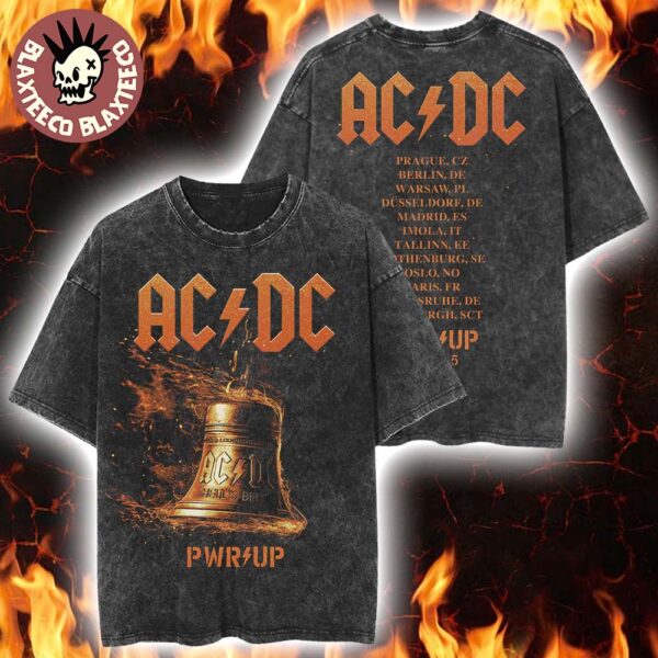 Blaxteeco: About ACDC PWR Up Europe 2025 Tour Merch Hells Bells Lightning With Tour Dates Two Sided Washed T-Shirt: