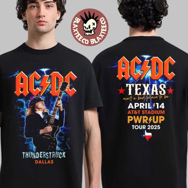 Blaxteeco: About ACDC Thunderstruck Dallas PWR Up Tour North America 2025 Texas At AT And T Stadium On April 14 2025 Ain’t A Bad Place To Be Two Sided Unisex T-Shirt: