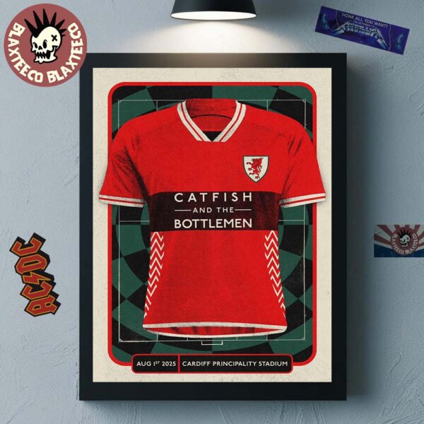 Blaxteeco: About Catfish And The Bottlemen Cardiff Wales 2025 Gig Poster At Cardiff Principality Stadium On August 1 2025 Wales National Football Team Uniform Art Poster Canvas Introduction