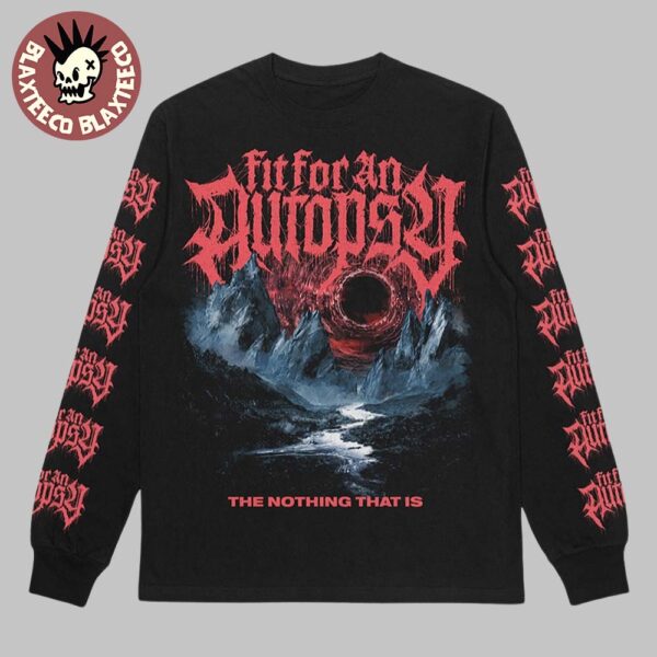 Bring the brutality wherever you go with the Fit For An Autopsy Summer 2025 European Assault Merch – The Nothing That Is Crewneck Sweater. Designed for fans of heavy music and darker aesthetics, this official long-sleeve crewneck combines killer style with comfort. Featuring the haunting album-inspired artwork of “The Nothing That Is,” the design showcases a chilling void surrounded by jagged mountain peaks, printed in vivid detail on the front. The band’s iconic blood-red logo drips from the top, while the sleeves are emblazoned with repeated “Fit For An Autopsy” prints, delivering maximum metal attitude from all angles.