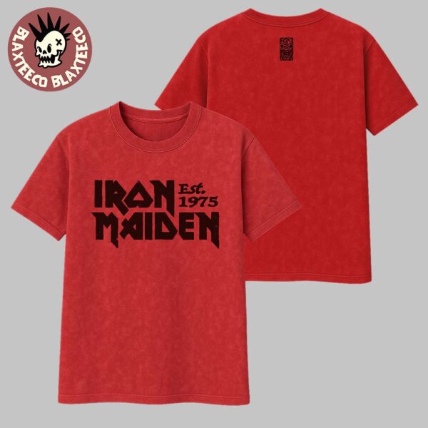 Celebrate half a century of heavy metal legacy with the Iron Maiden Est 1975 Logo Vintage 50th Anniversary Red Washed Tee Shirt. Designed for die-hard fans, this bold red tee features a distressed wash for that true vintage aesthetic. The iconic Iron Maiden logo takes center stage on the front in bold black print, with “Est. 1975” marking the birth year of the legendary band. Crafted for comfort and style, this unisex T-shirt blends retro vibes with modern streetwear appeal—perfect for concerts, festivals, or everyday wear.