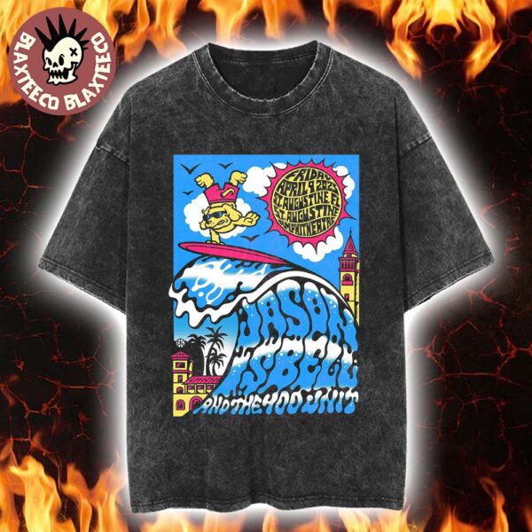 Blaxteeco: About Jason Isbell And The 400 Unit Poster For Show In St Augustine Florida At St Augustine Amphitheatre On April 9 2025 Surfing Dog Artwork Washed Vintage T-Shirt: