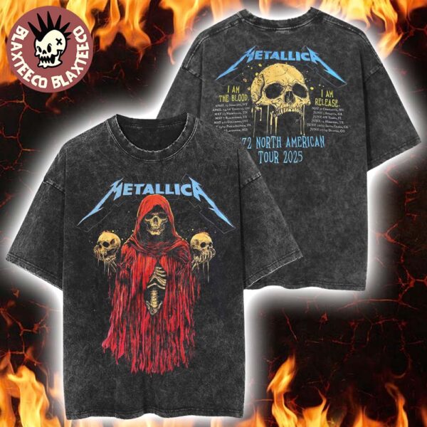 Metallica M72 North American Tour 2025 Tour Dates Skeleton Witch I Am The Blood I Am Release Vintage Washed T-Shirt