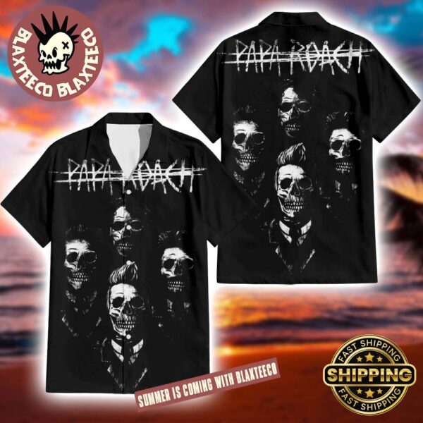 Blaxteeco: Papa Roach Skeleton Band Member Queen Style Art In Black 2025 Summer Hawaiian Shirt