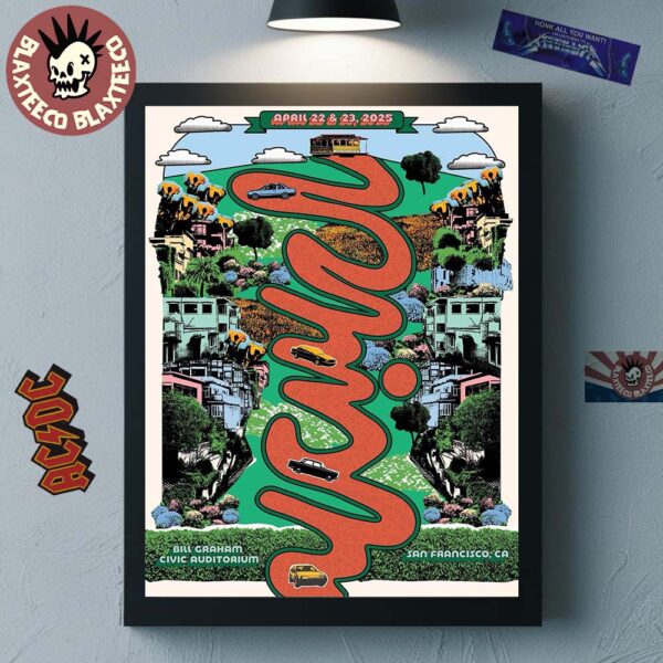 Commemorate an epic two-night run with the Phish Official San Francisco LE Poster At Bill Graham Civic Auditorium On April 22 and 23, 2025 Home Decor Poster Canvas. This limited edition canvas captures the vibrant energy and artistic spirit of Phish’s 2025 San Francisco shows in stunning detail. Featuring official concert artwork infused with psychedelic elements and the venue’s iconic character, this poster is a must-have for collectors and fans alike.