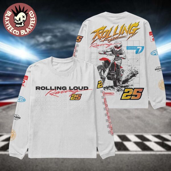 Blaxteeco: About Rolling Loud 2025 Merch Racing Los Angeles 25 Moto Cross White Longsleeve T-Shirt Introduction